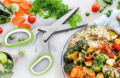 Just 1 pair of scissors but install 5 pairs of blades working at the same time, makes chopping easier and much more efficient than a knife or single blade scissors. Sharp blades make fast leaves snipping rather than crushing or messing. No flavor losing of ingredients. Don’t be too surprised when you find can hold it tightly even with wet hands or oily fingers, It’s supposed to work effortless and safe while snipping.